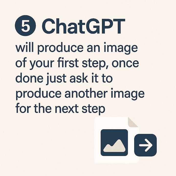 Step 5:Ā ChatGPT will produce an image of your first step; once done, just ask it to produce another image for the next step.